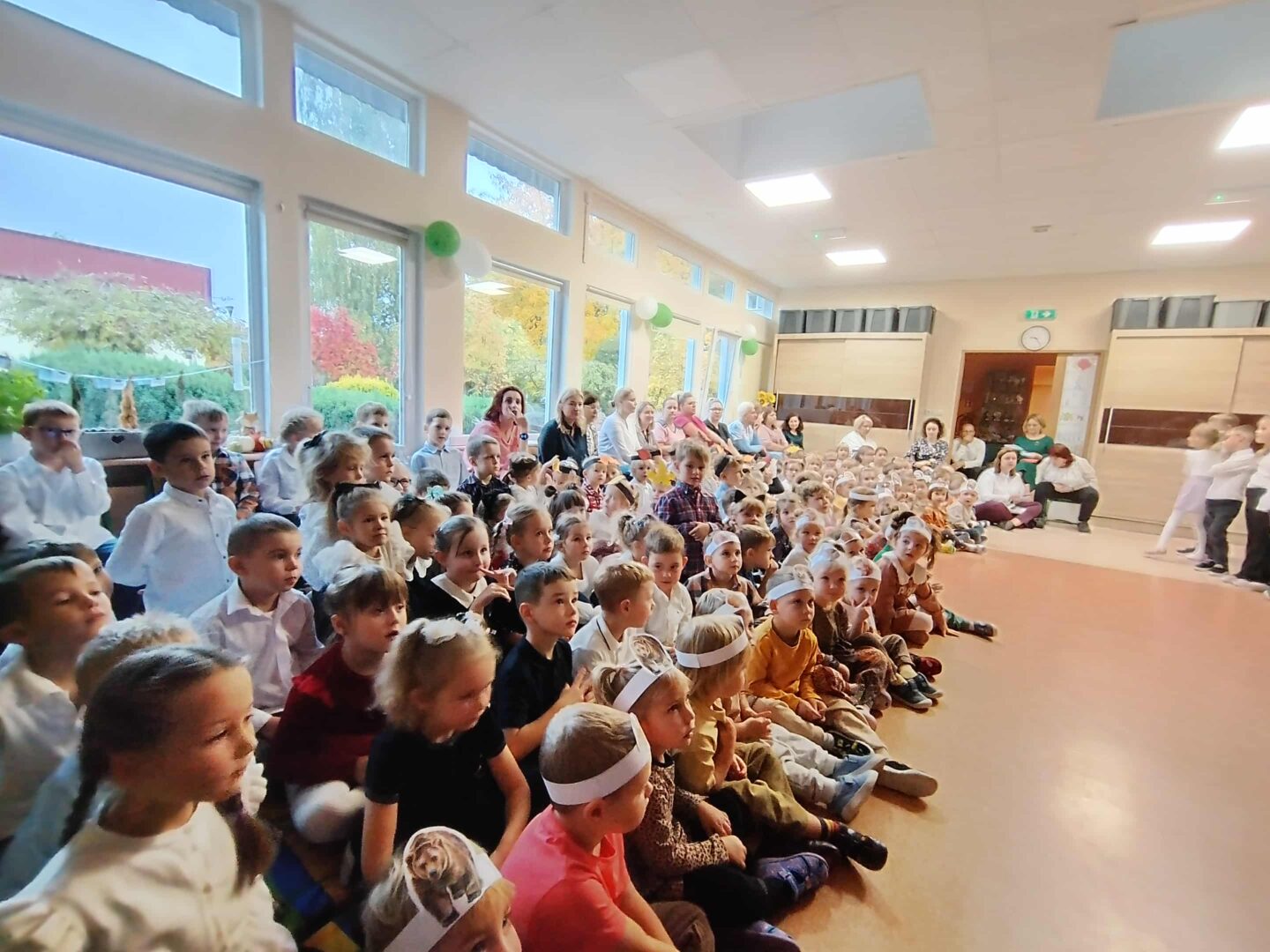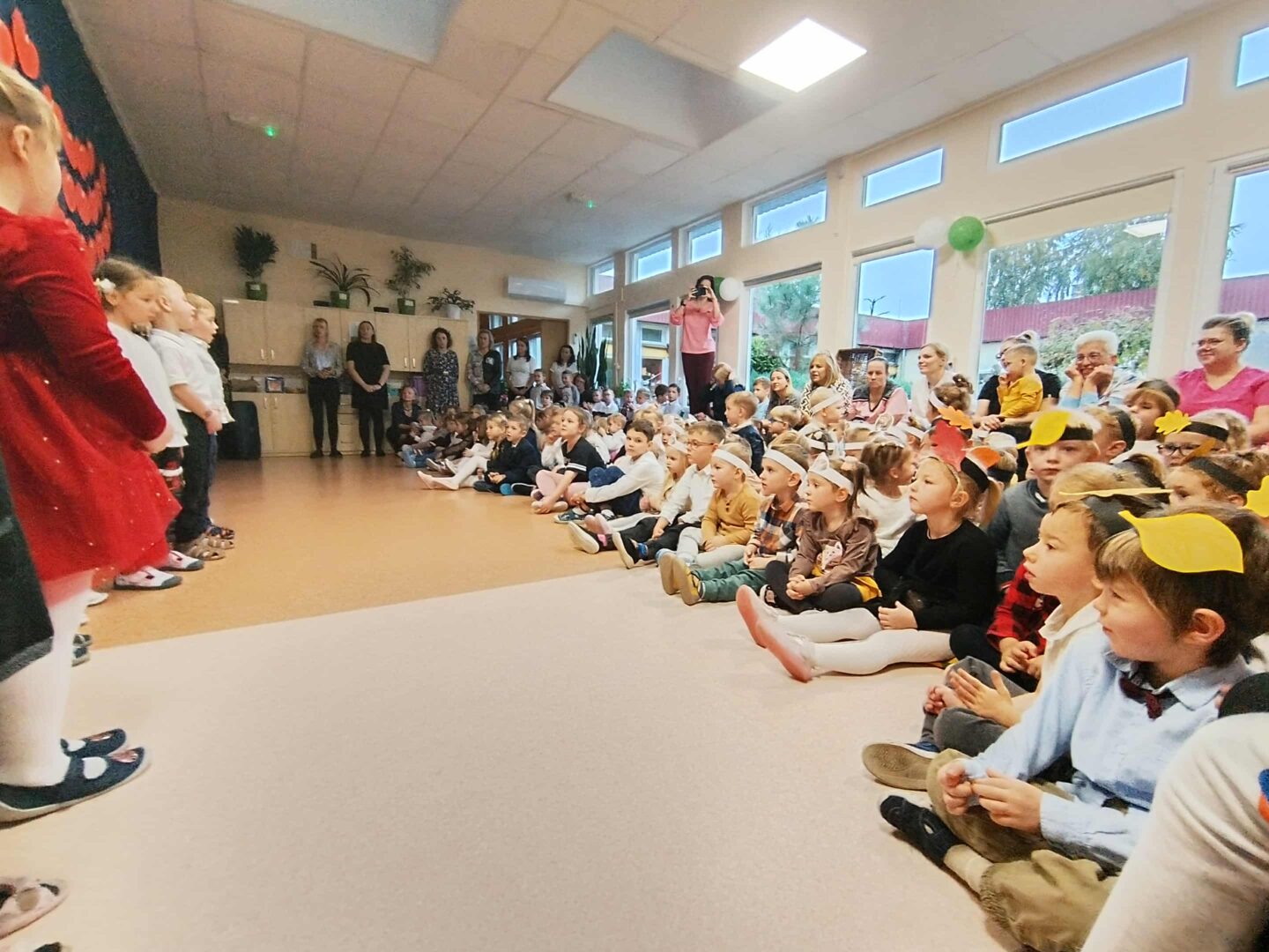 We wtorek 14 października o godzinie 9:15 w sali nr 7 zebrały się wszystkie grupy przedszkolne wraz pracownikami aby uczcić wspólnie Dzień Edukacji Narodowej. Każda grupa zaprezentowała piosenkę, wiersz lub taniec przed liczną widownią, która ledwo mieściła się razem. Wszyscy wystrojeni z dumą oglądali i występowali na przemian. Na koniec nastąpiło uroczyste wręczenie nagród przez Panią Dyrektor, a braw nie było końca.
